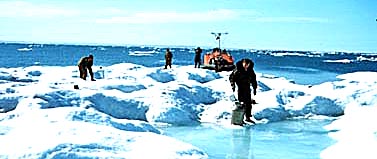 Collecting fresh water on top of an iceberg.